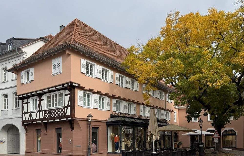 Stuttgart/Ettlingen – Das Modehaus Streit steht im Zentrum von Ettlingen an prominenter Stelle. Zum Schlossplatz hin zeigt die Fassade nach einer umfassenden Restaurierung jetzt eine besondere Attraktion: Das freigelegte Fachwerk im ersten Obergeschoss präsentiert die Handwerkskunst der Zimmerleute aus dem 17. Jahrhundert nun weithin sichtbar. Die Denkmalstiftung Baden-Württemberg ernennt das Haus Streit zum Denkmal des Monats Januar.